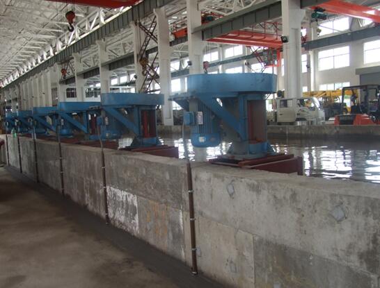 浸出槽是礦山冶金主要設備之一,用攪拌器使物料在溶液中處于懸浮狀態的浸出方法。物料和浸出劑按一定的比例調漿,調成的礦漿密度一般為10%~50%。在浸出過程中,利甩設置在攪拌槽中的攪拌裝置使空氣與固體液體充分接觸混合均勻以及固體顆粒懸浮。旋槳式ZCX,斜葉槳式(XJ、HJ),開啟渦輪式(XKK,MK,ZK)。